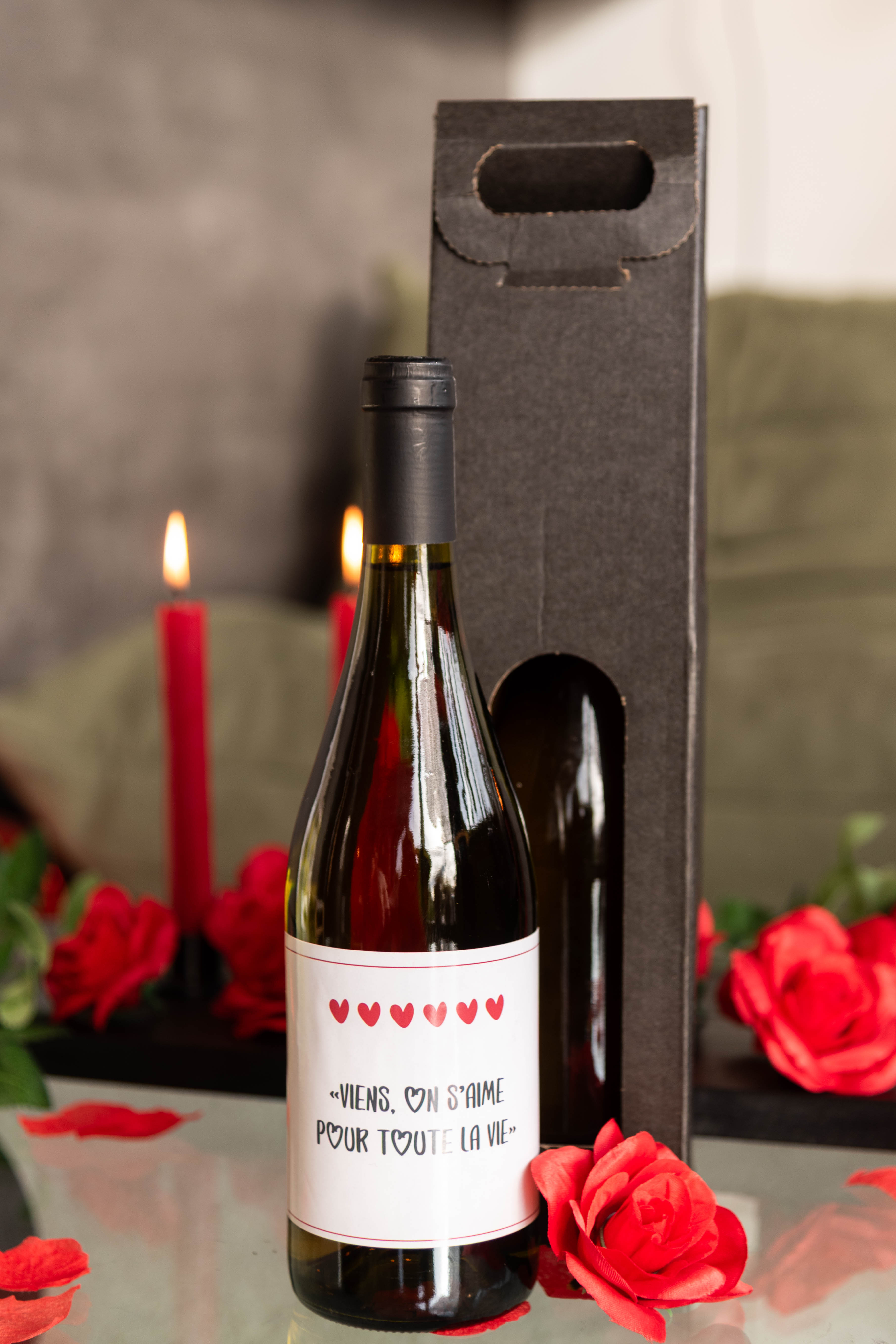 Pour célébrer la Saint-Valentin avec élégance, découvrez notre cuvée “Cupidon”, une bouteille de vin personnalisée avec une étiquette exclusive Saint-Valentin, idéale pour offrir un cadeau unique et plein de tendresse.